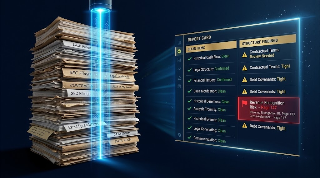 If you’ve ever survived a PE buy-side due diligence process, you know the drill. Thousands of documents. A 30-day window. A team of analysts surviving on delivered food and the quiet certainty that they’re definitely missing something in Tab 47 of the data room.