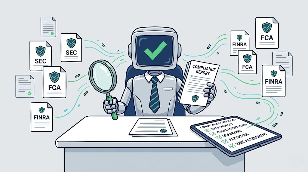 Before you send a research report or investment memo, the platform scans it for language that might trigger regulatory concerns — think MiFID II, Reg FD, or specific disclosure requirements in your jurisdiction.